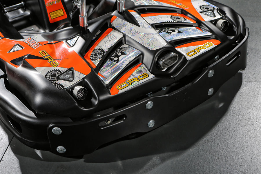 The result of all this has then provided not only the safest cockpit pit / seating arrangement, but the most aesthetically appealing Go Kart you are likely to come across. Swooping entirely around the driver, the front wheels and then into the flooring section, all creating that unique cockpit look.